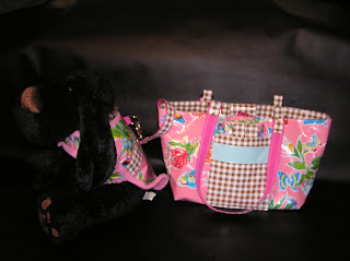 The set begins with the Matunuck Reversible Tote that is the perfect size to double as a puppy purse! It is 7.5" tall x 12" along the bottom x 6" wide. There is a snap closure and a leash attachment so you can safely travel with your furry friend.